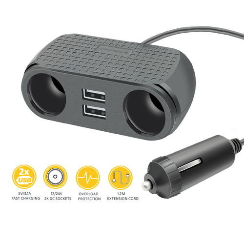 This car lighter socket adapter allow you convert vehicle’s 12/24V power socket into 2 x DC socket and 2 USB outputs.