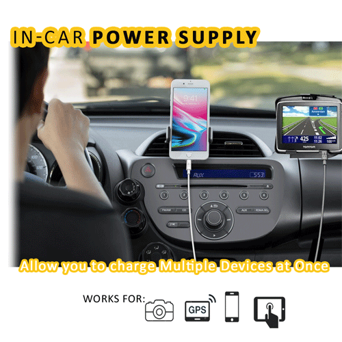Allow you to charge multiple devices at once. Simply plug into car’s cigarette lighter socket, very convenient and