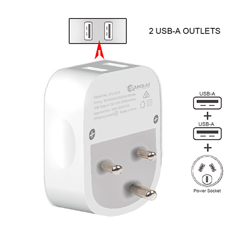 traveling. Featuring 2 x USB-A Fast Charging Port and a South Africa style