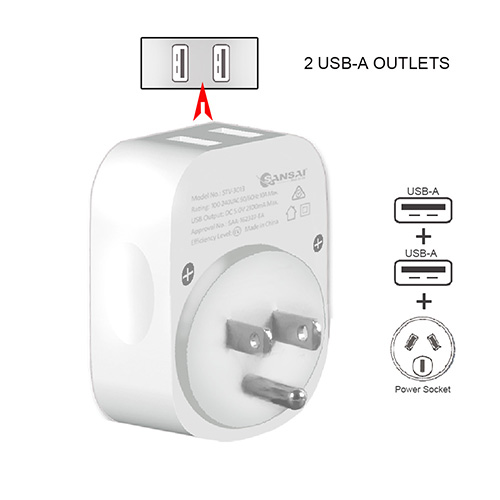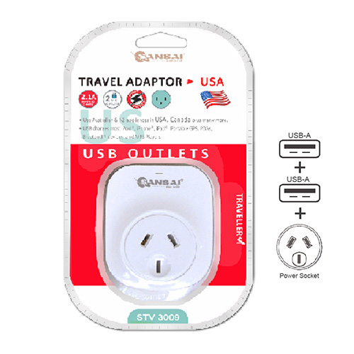 traveling. Featuring 2 x USB-A Fast Charging Ports and a USA/ Canadian style